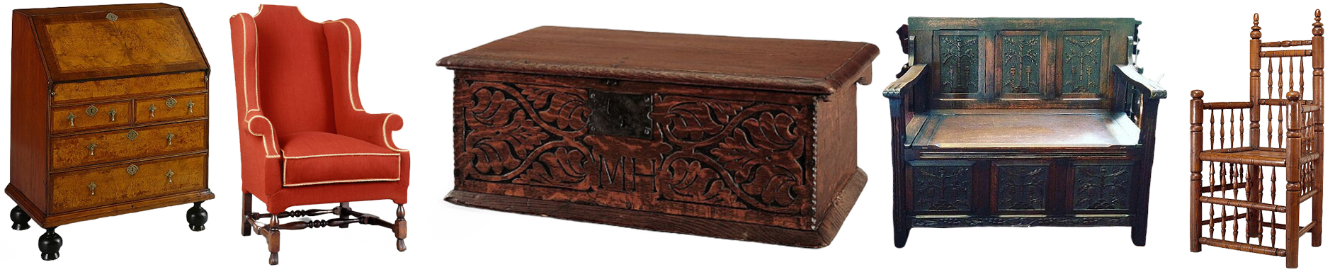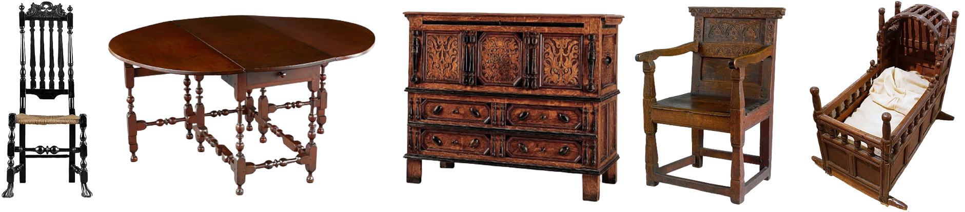 Other recognisable features included fluted legs with extensively turned profiles, heavily carved finials and crests… and raised or inset panels often with detailed strapwork.