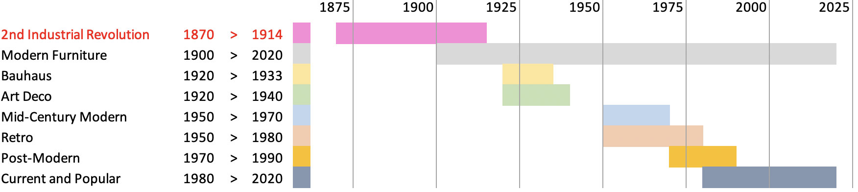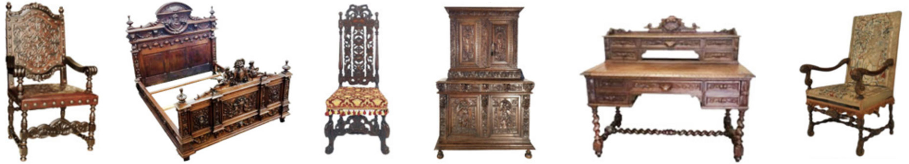 The unprecedented display of opulence and wealth during the Revival (read Victorian) era was facilitated by the vast array of styles and profiles that could now be produced following the machinery introduced by the Industrial Revolution… and it only ended around 1890 with the rise of the Arts & Crafts movement and the emergence of Art Nouveau and Art Deco furniture.