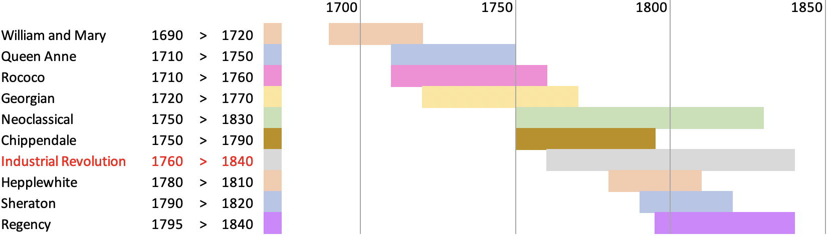The mid 1800s saw wave after wave of Revival styles as furniture makers turned to past Classical designs for inspiration… but they were also manufacturing for ‘the market’ and their interpretations often only vaguely resembled the pieces from the actual periods. The most common denominator during this era was the Victorian ‘more is more’ philosophy as a stark contrast to the more elegant styles of the 1700s and early 1800s.