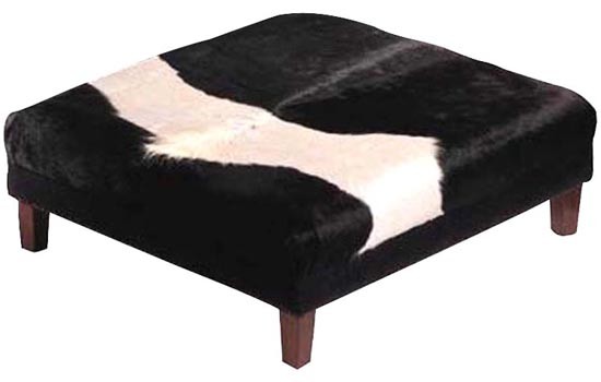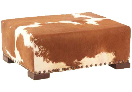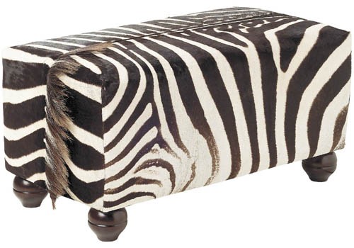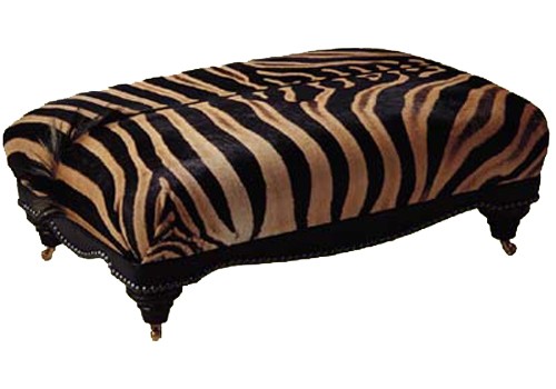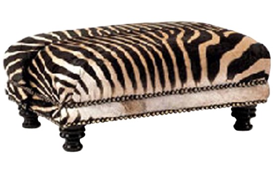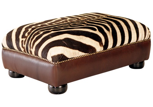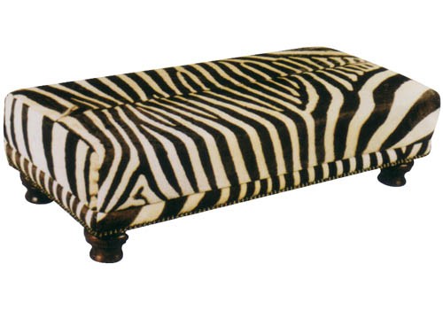 A simplistic double ottoman on wooden bun feet in a choice of natural leathers or zebra skin. Availa..
