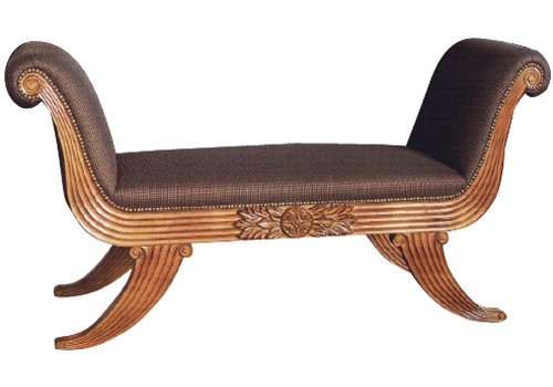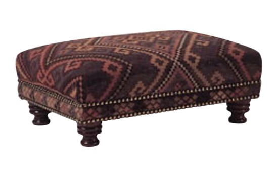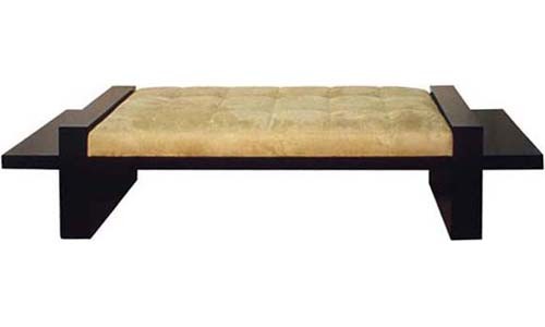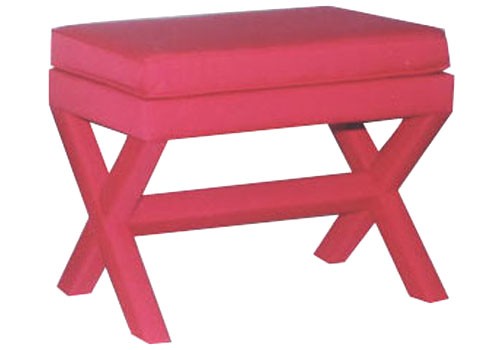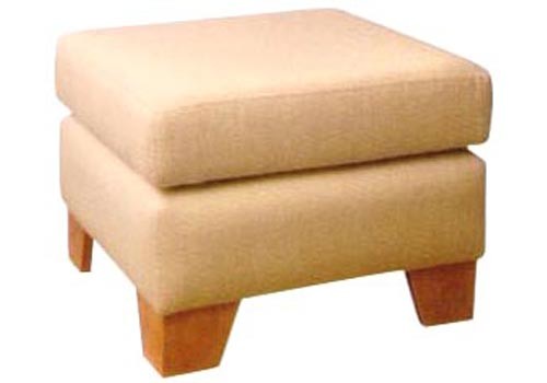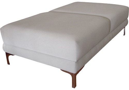 A rectangular double ottoman with a square-cut cushion fitted to a chunky wooden U-frame.Shown uphol..