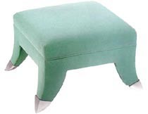 A modern ottoman with chromed legs and upholstered in triangles to create a retro look...
