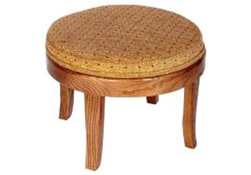 A traditional footstool with a deep buttoned leather studded top and squared legs in oak or mahogany..