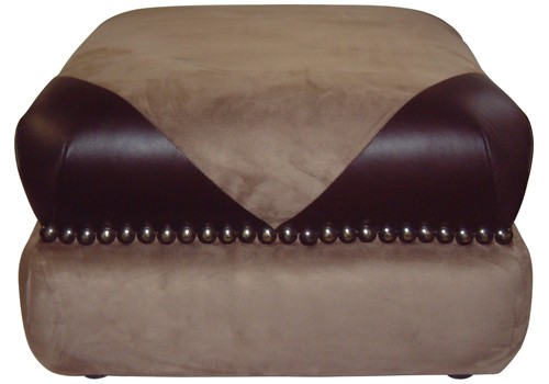 A modern ottoman with a choice of polished aluminum or brass end caps...