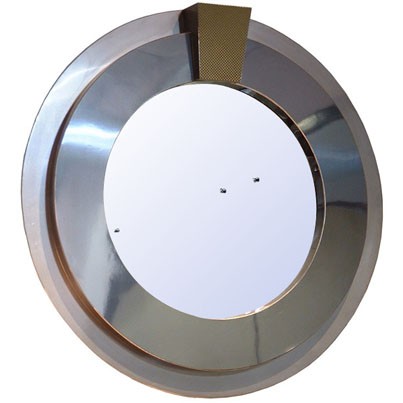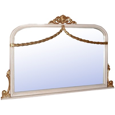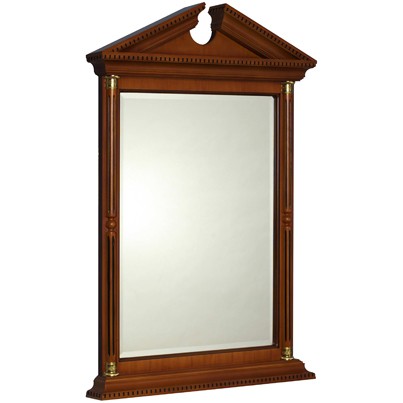 A classical mirror frame with an open angled top and fluted columns along its sides...