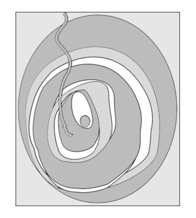 An abstract design with concentric circular shapes, shown in grayscale, but available in any combination of colors and in any size or shape, or can be custom designed to client requirements