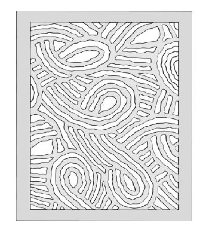 An abstract design with free-flowing curved lines contained in a simple rectangular border, shown in grayscale, but available in any combination of colors and in any size or shape