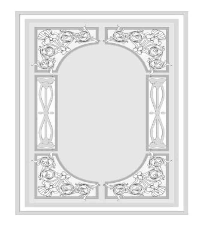 A classical design incorporating bordered leaves and motifs, shown in grayscale, but available in any combination of colors and in any size or shape