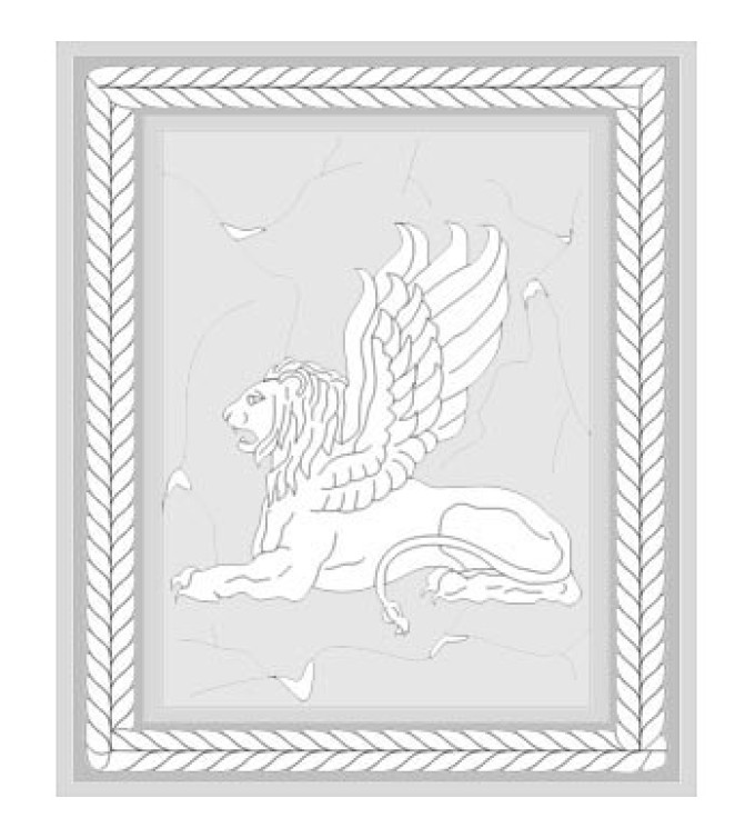 A double rope border framing a large winged lion, shown in grayscale, but available in any combination of colors and in any size or shape