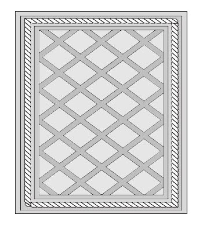 A simplistic trellis design set into a layered border featuring a twisted rope, shown in grayscale, but available in any combination of colors and in any size or shape
