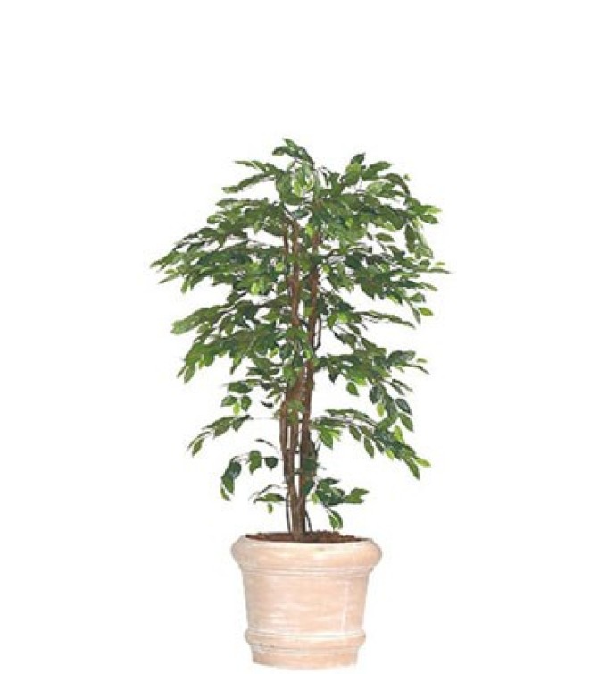 A 1.8 metre ficus tree with a multi stemmed trunk and silk foliage.