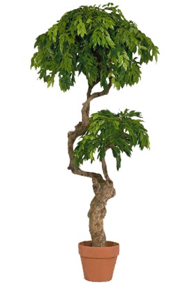 A 1.8 metre ficus umbrella tree with a natural coffee trunk and silk foliage. Supplied ready planted..