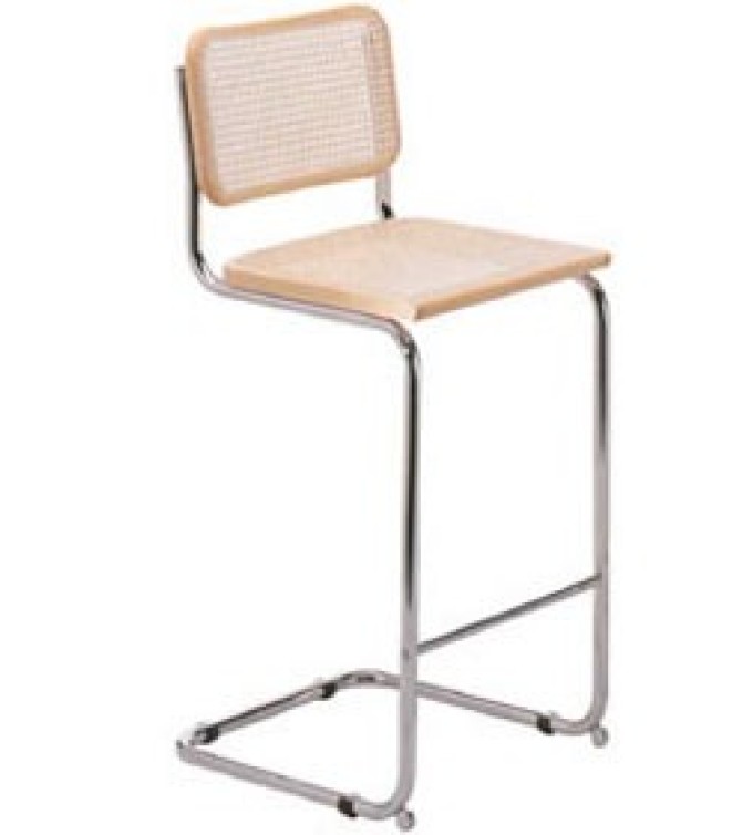 A Marcel Breuer bar stool with a framed webbed cane seat and wide back