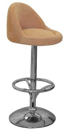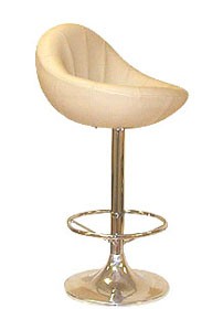 A modern bar stool with a fully upholstered uni-molded seat and back on a curved chrome frame...