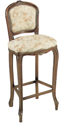A traditional Louis bar stool in a a choice of natural woods or antique paint finish with a fully up..