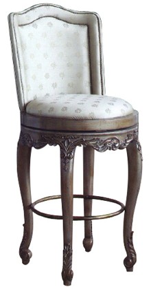 A traditional carved Queen Anne bar stool available in wood or an antique paint finish with a fully ..