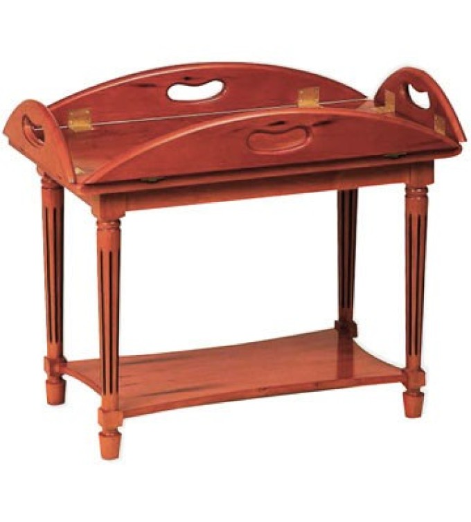 A butlers tray with fold up sides and fluted legs.