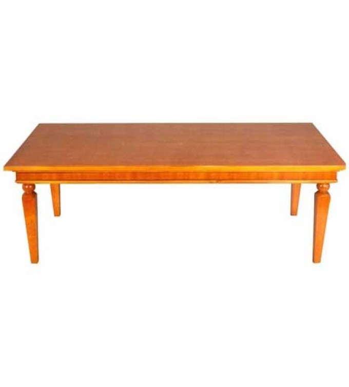 A simplistic wooden coffee table with a rectangular top and square tapered legs.