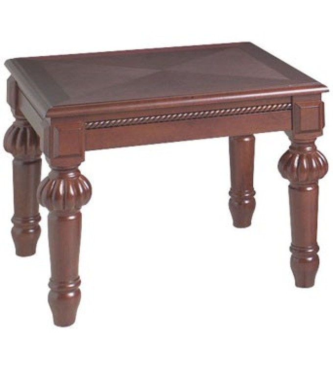 A traditional lamp table featuring a rope trim and carved acorns on turned legs.