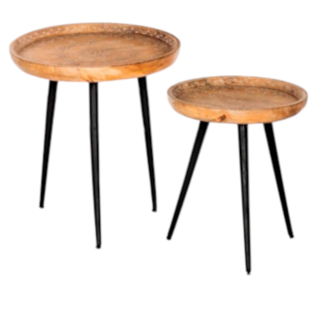 A contemporary lamp table with a wooden top and flared tapered legs...