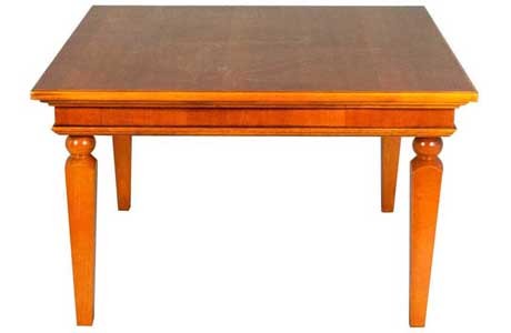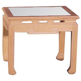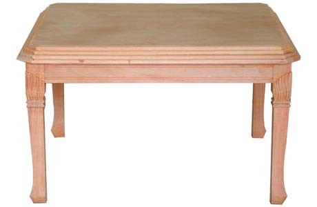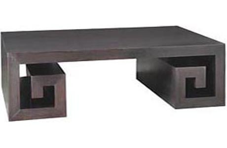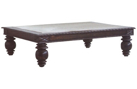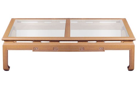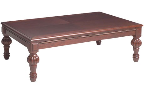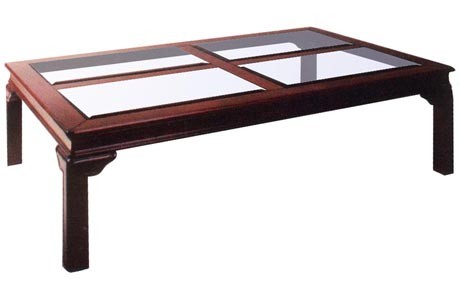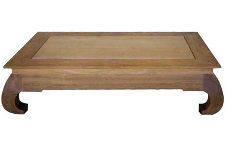 A simplistic wooden top coffee table with oriental styled opium legs...
