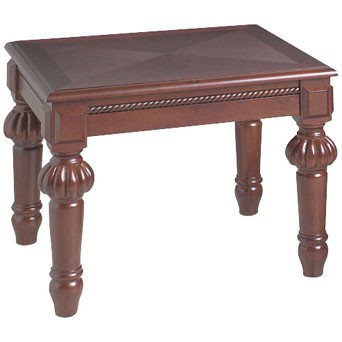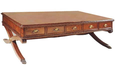 A traditional coffee table featuring a rope trim and carved acorns on turned legs...