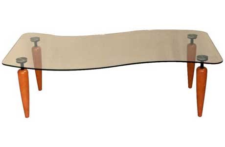 A contemporary coffee table to commemorate the new millennium, with a curved leg and either a glass ..