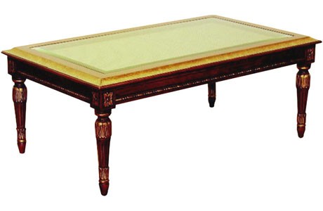 A period style coffee table with tapered fluted legs and a choice of a wooden or marble top encased ..