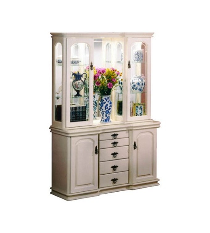 A 1,400mm sideboard with a top display unit featuring glass sides and shelves