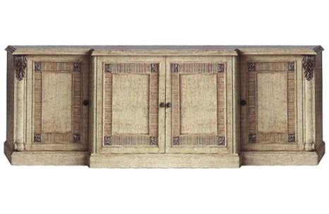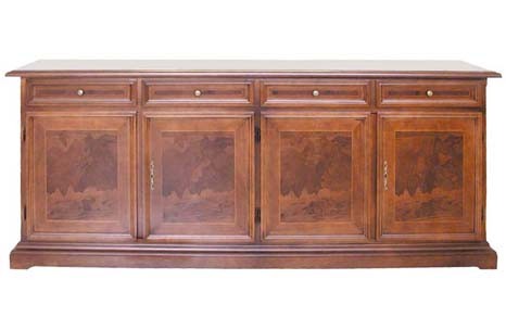 A traditional sideboard with intricately carved legs, 4 drawers and 4 paneled doors. Available in li..
