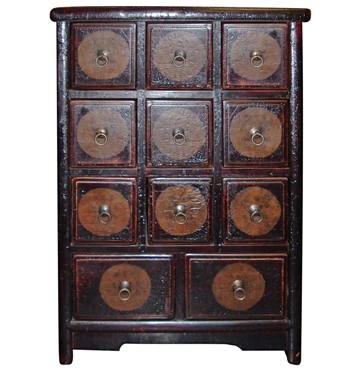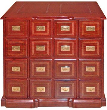 A traditional jewelry drum / chest of drawers made from solid Rosewood, featuring carved detail and ..