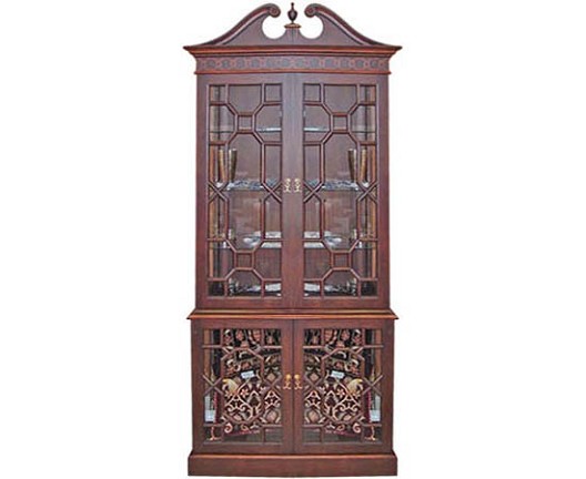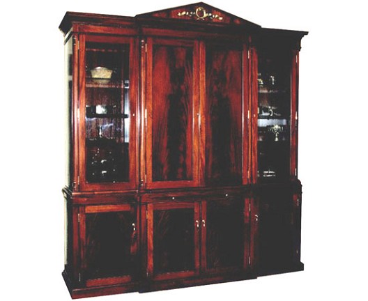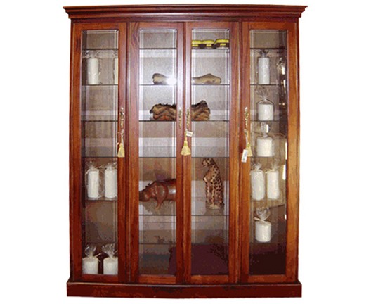 A traditional Roman display cabinet made from solid Rosewood with intricately carved cabinet doors a..