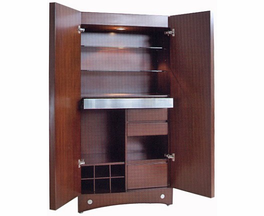 A cocktail cabinet with a mirrored back and optional halogen down lighters, two drawers and a storag..