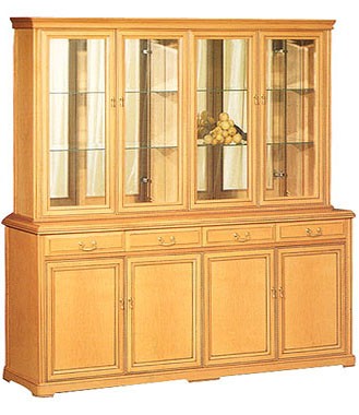 A 2,000mm sideboard with a top display unit featuring glass sides and shelves as well as a mirrored ..