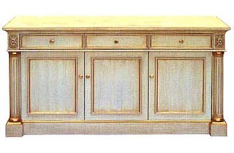 A classical three drawer, three door sideboard with fluted corner columns. Can be stained to various..
