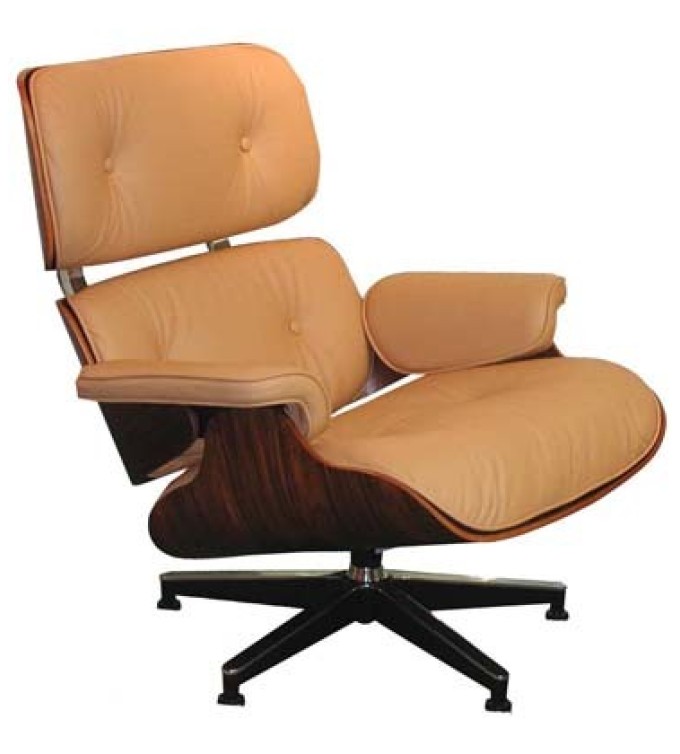 A modern classic designed by Charles Eames. Constructed from moulded rosewood and leather on a chrome frame.