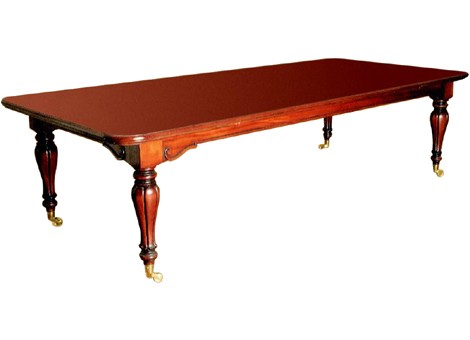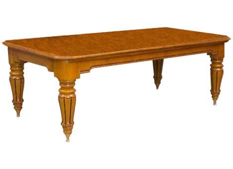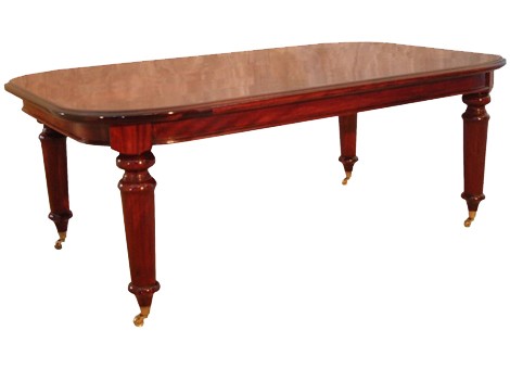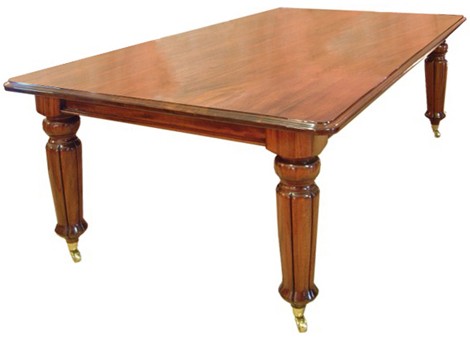 A classical dining room table with fluted edges and Victorian reeded legs...