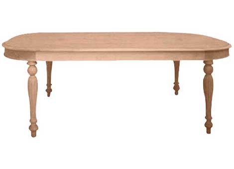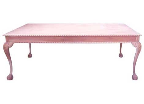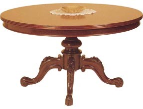 A Victorian dining room table featuring a wooden top with optional extension and heavily carved legs..