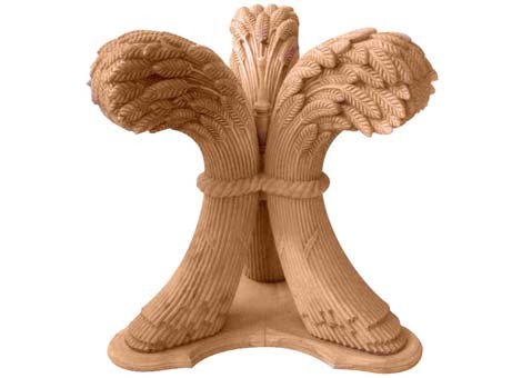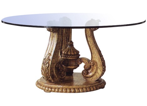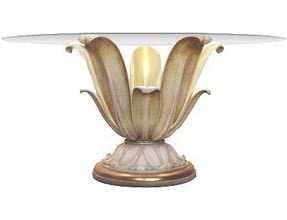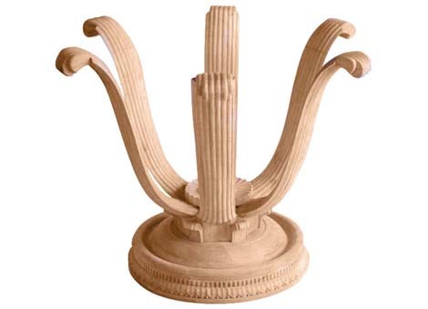 A dining room table base with large leaves blooming out from an ornate central dome. Can be stained ..