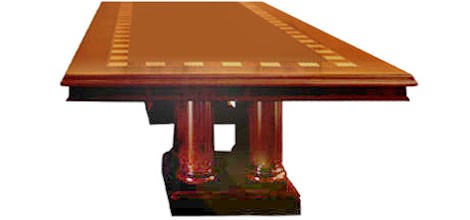 A sturdy dining room / boardroom table, custom-made to client specifications for width, length, styl..